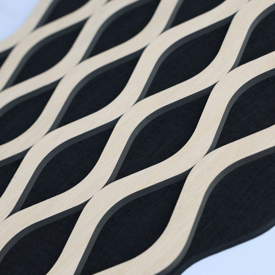 Conçus en bois FSC certifié, ces panneaux présentent une finition chêne claire et texturée, avec un motif diamant offrant relief, profondeur et sophistication.