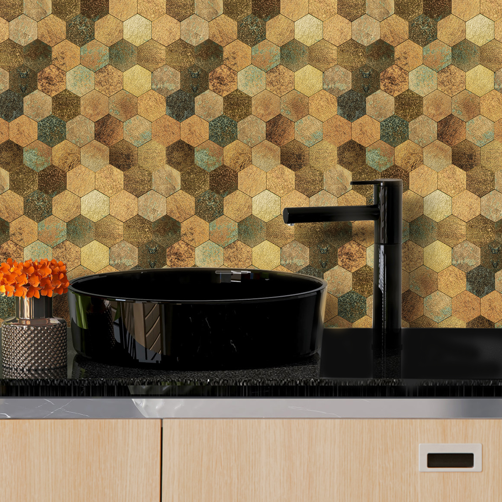 Plaquettes de Parement en Mosaïque Mix Golden Hexagonal
