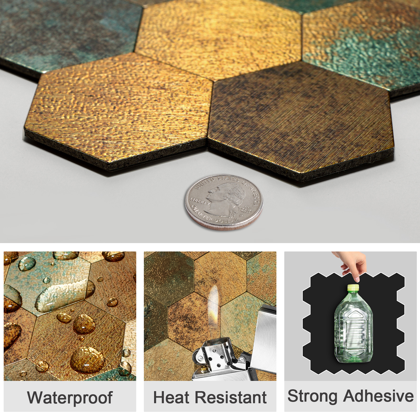 Les Plaquettes de Parement en Mosaïque Mix Golden Hexagonal de Totaal Decor Belgique offrent une finition moderne et luxueuse grâce à un subtil mélange de teintes dorées, beige et gris en motif hexagonal. Conçues pour transformer vos espaces rapidement, elles se posent en quelques minutes grâce à leur système auto-adhésif 3M très puissant.
