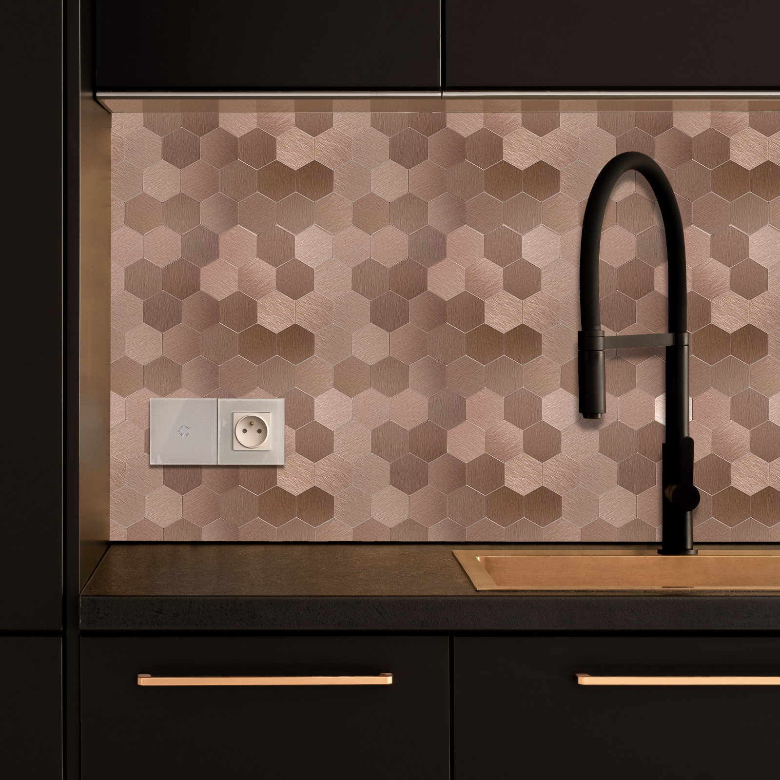 Apportez une touche moderne, élégante et tendance à vos murs avec les plaquettes mosaïque auto-adhésives Rose Hexagonal : installation rapide, résistance élevée et un effet pierre hexagonal ultra-réaliste.