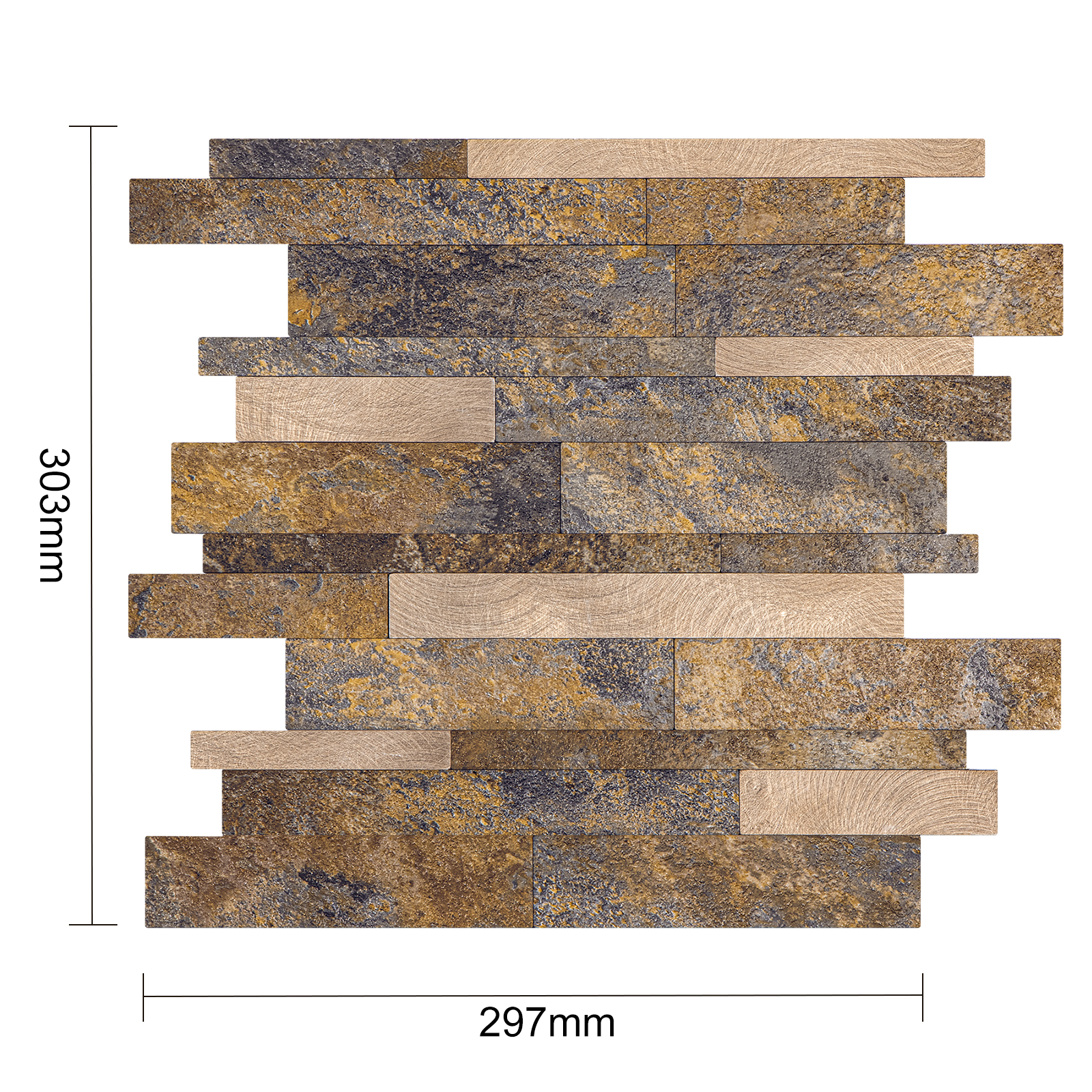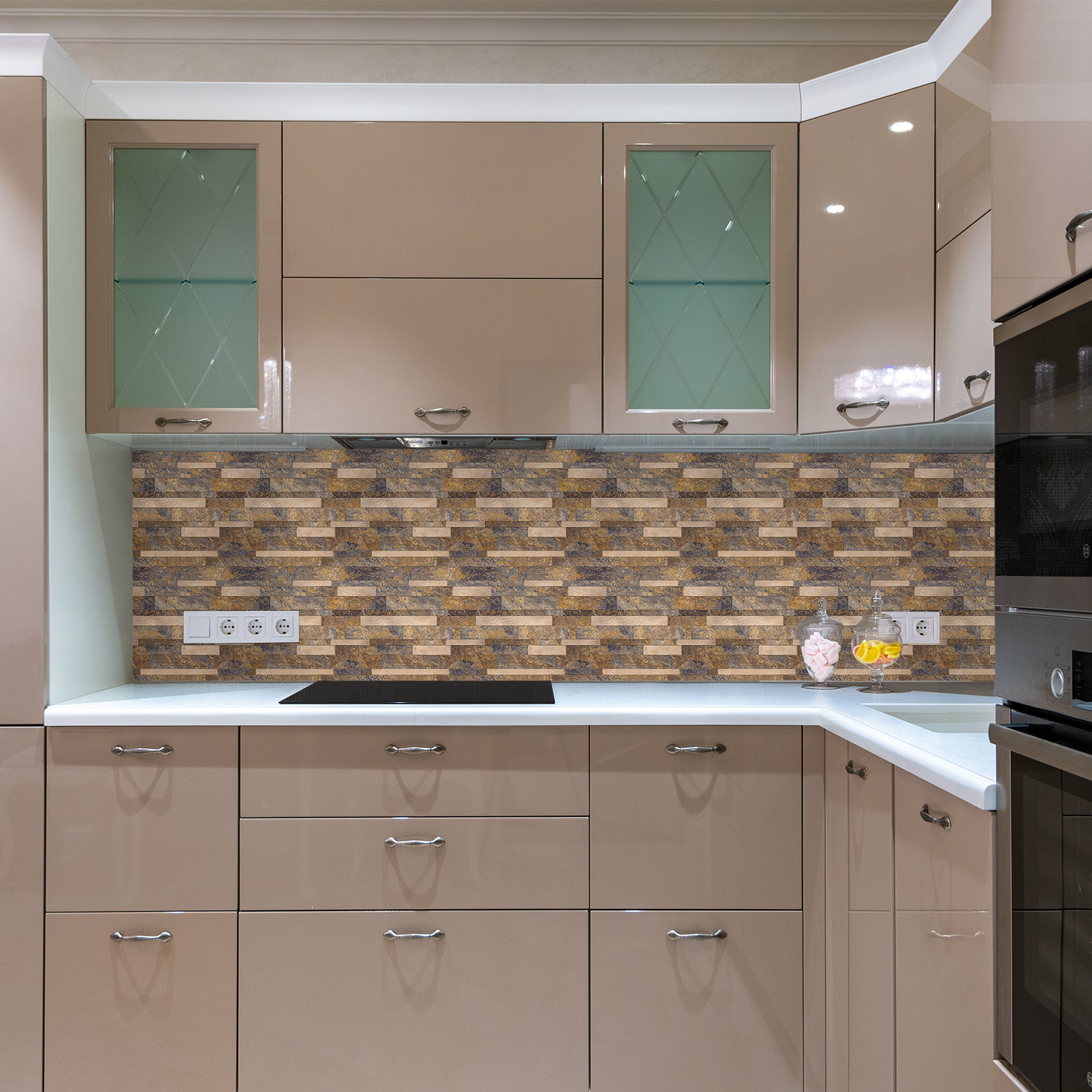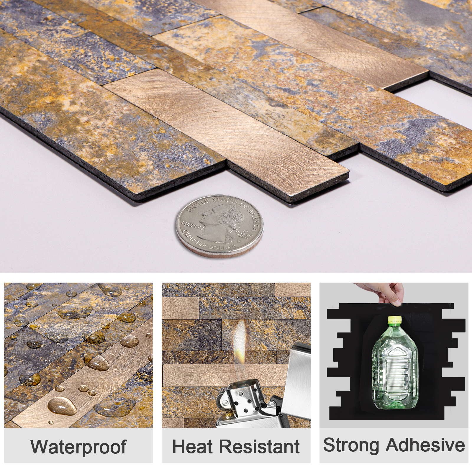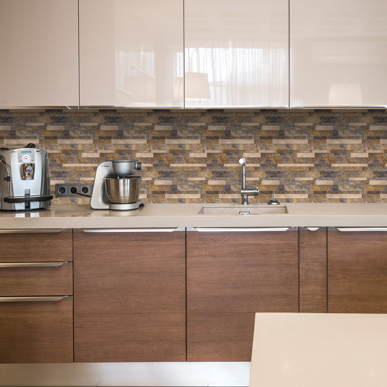 Leur surface en PVC haute qualité et aluminium imite parfaitement l’aspect de la mosaïque minérale, tout en offrant une résistance exceptionnelle aux rayures, aux éclaboussures, à la lumière et aux impacts.