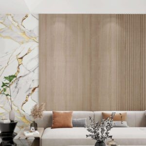 Nos panneaux en PVC se distinguent par leurs finitions soignées, leurs textures variées et leur résistance exceptionnelle à l’humidité, aux chocs et à l’usure du temps. Faciles à nettoyer et à entretenir, ils représentent une alternative élégante et économique aux matériaux traditionnels. Disponibles dans une large palette de couleurs, d’effets bois ou marbre, ils s’intègrent harmonieusement dans tous les styles d’intérieur.