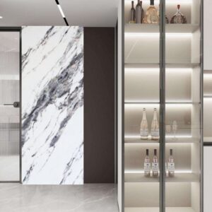 Nos panneaux en PVC qui ressemblent au marbre ont l’apparence du vrai marbre, mais ils sont beaucoup plus légers et moins chers.